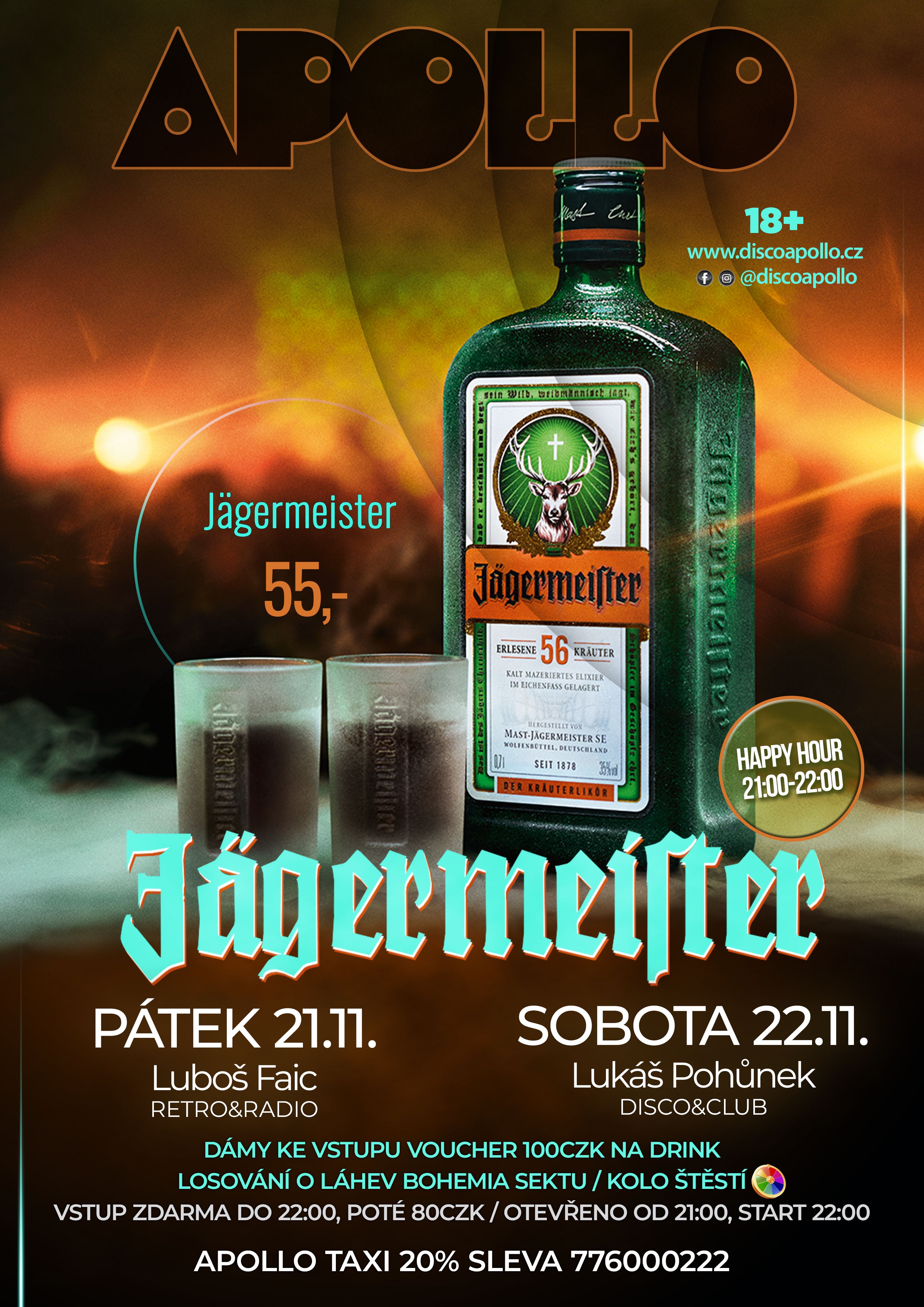FOTOGALERIE Prohlédnout galerii DJ Peltone B-DAY Night (Melvin Coxx, Rudeboy, Mauro P)DJ FalloMANENE v Apollu (support Fallo)4. charitativní večer v ApolluFIVE FELLAS19. narozeniny Disco Apollo & MANENEMichael C v Apollu!DJ Brian v Apollu1234 BLÍŽÍCÍ SE AKCEHAPPY HOUR 21:00-22:005.9.2025HALLOWEEN / 31.10. & 1.11.29.9.2025RETRO PÁTKY V APOLLU!29.9.2025COCKTAIL SQUEEZEE / 7.11. & 8.11.3.11.2025CHUPITO PARTY / 15.11.3.11.2025JÄGERMEISTER / 21.11. & 22.11.3.11.2025CUBA LIBRE / 28.11. & 29.11.3.11.2025RETRO KAŽDÝ PÁTEK25.11.2025KRAMPUS SHOW / 5.12. & 6.12.25.11.2025